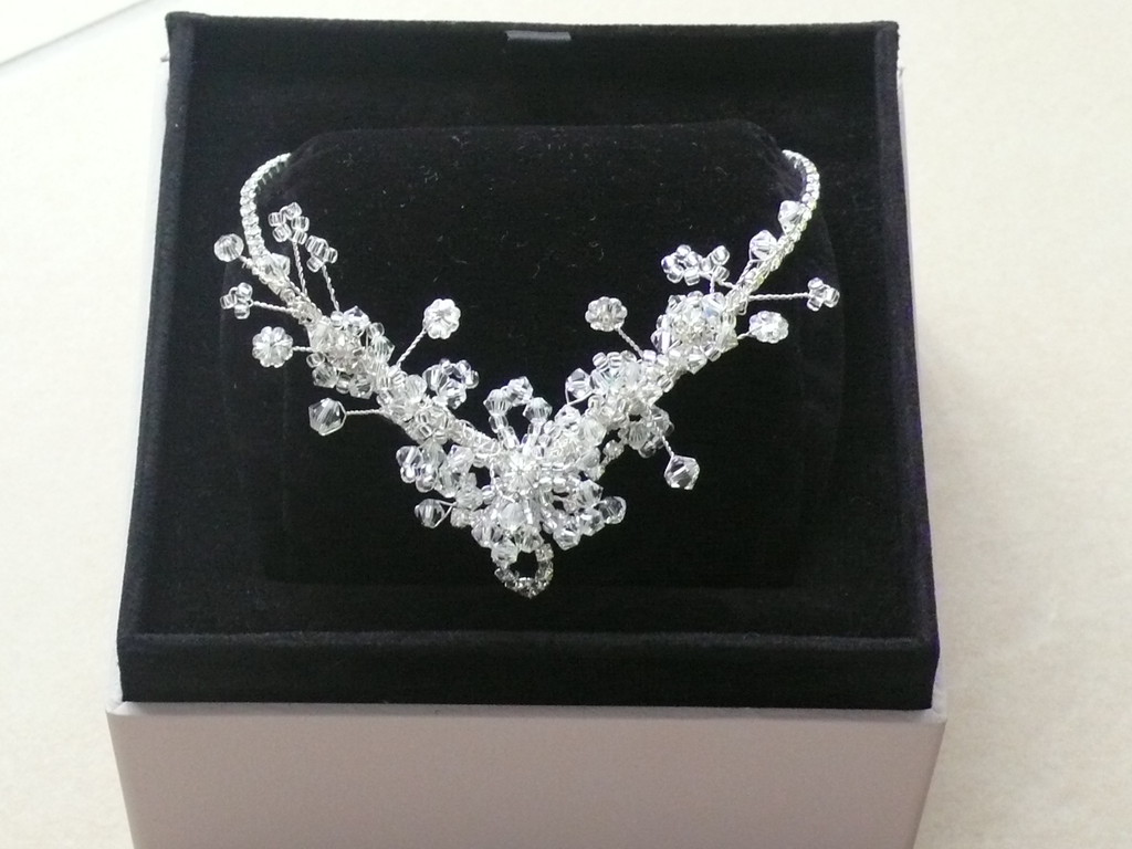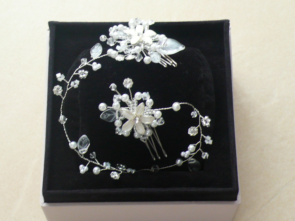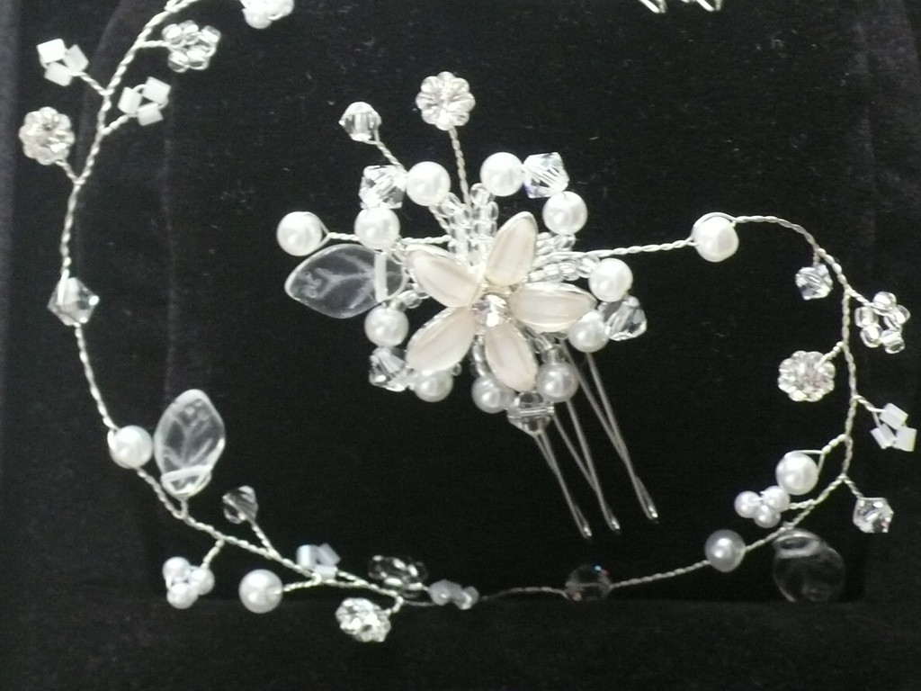 Da wir diese Artikel einzeln anfertigen, kannst Du gerne IDein individuelles Programm zusammenstellen. Alles auch im Set (Diadem, Tiara, Haarnadeln, Kette oder Collier, Armband, Ohrringe, Täschchen, Ringkissen etc.) erhältlich.